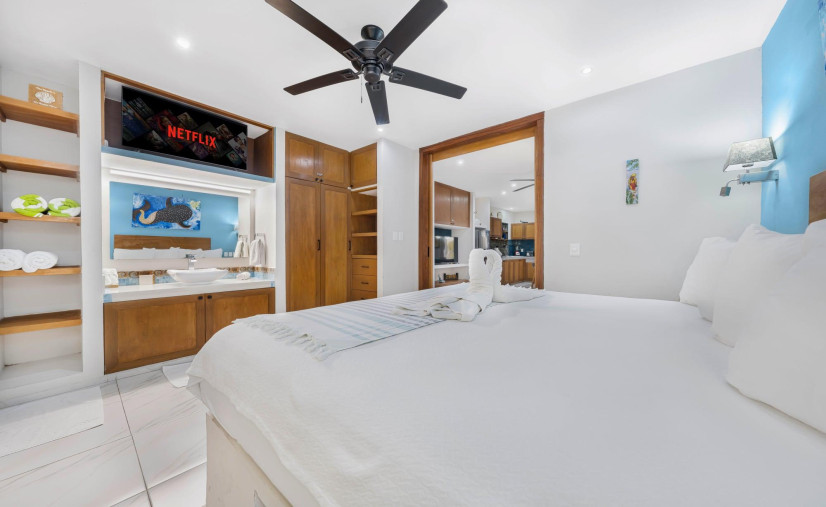 Ballena Suite: Big king bed, full kitchen, and a private pool—aka party central.