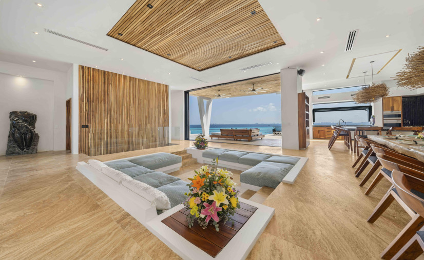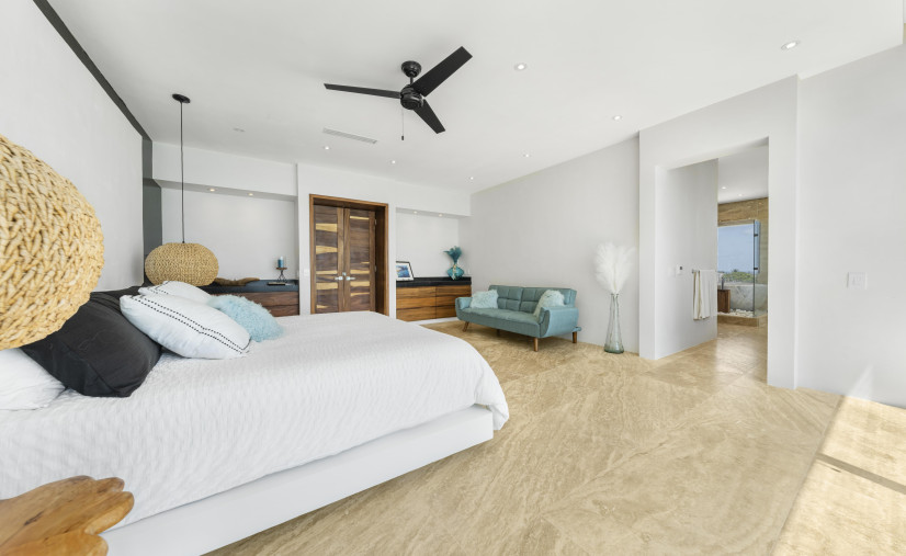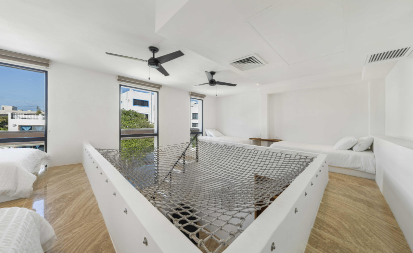 This jaw-dropping Caribbean villa is boho-chic meets modern luxury, with a whole lot of “how is this even real?” energy. You’ve got 4 floors, an elevator, 3 epic terraces (including a rooftop with unreal sunsets), 2 pools, a swing bar, and 8 ocean-view en-suite bedrooms—plus a lofted hangout with multiple beds and a cargo net that’s basically a built-in fun zone.