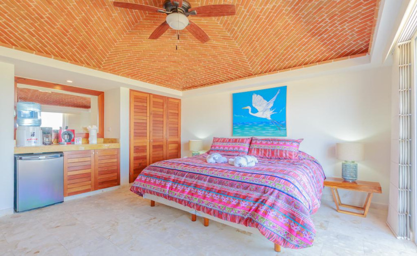 Start your day with a coffee on the patio, eyeing Cancun in the distance like a boss. This 1-bedroom studio is perfect for solo adventurers or couples escaping the chaos. King bed? Check. Brick dome ceiling? Fancy. AC, WiFi, Smart TV? Of course.