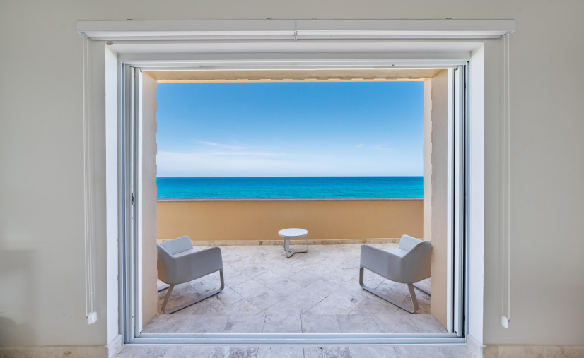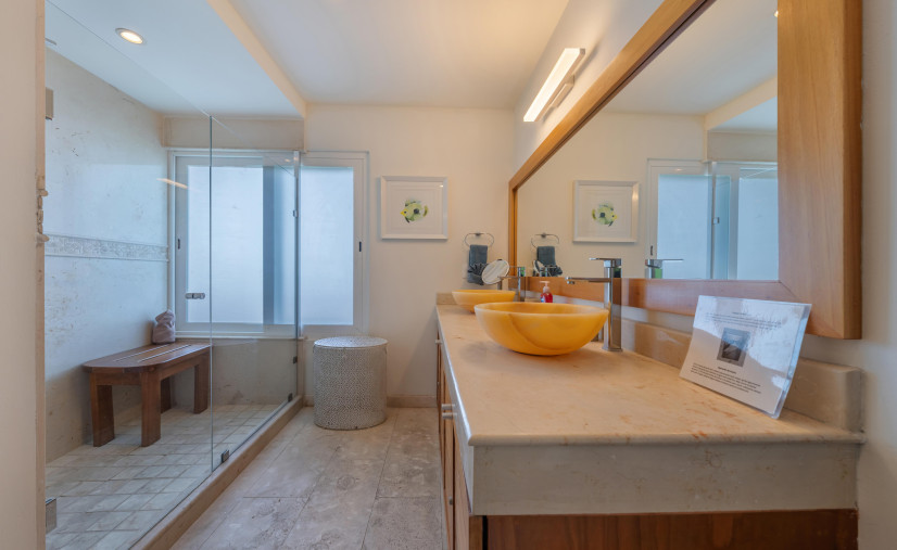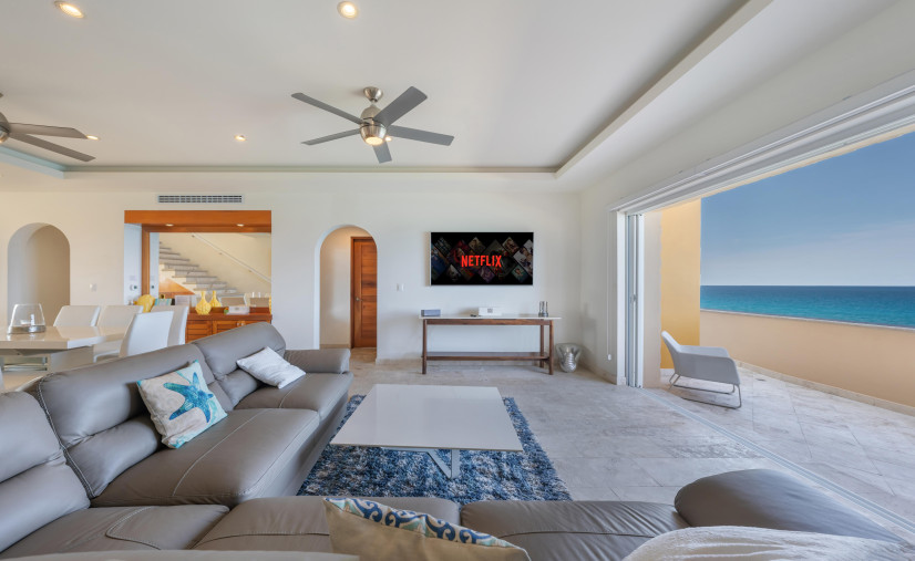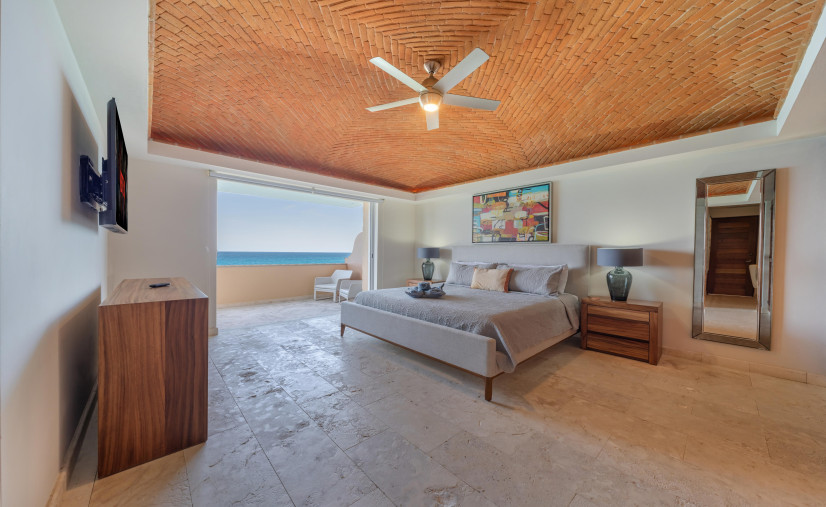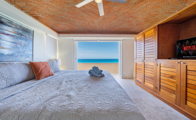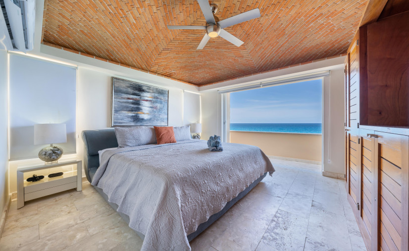 This dreamy condo is basically a front-row seat to the Caribbean Sea—wall-to-wall glass doors, breezy open layout, and a balcony that doesn’t quit. Every bedroom? King or queen beds, domed brick ceilings (hello drama!), and ocean views that’ll make your jaw drop.