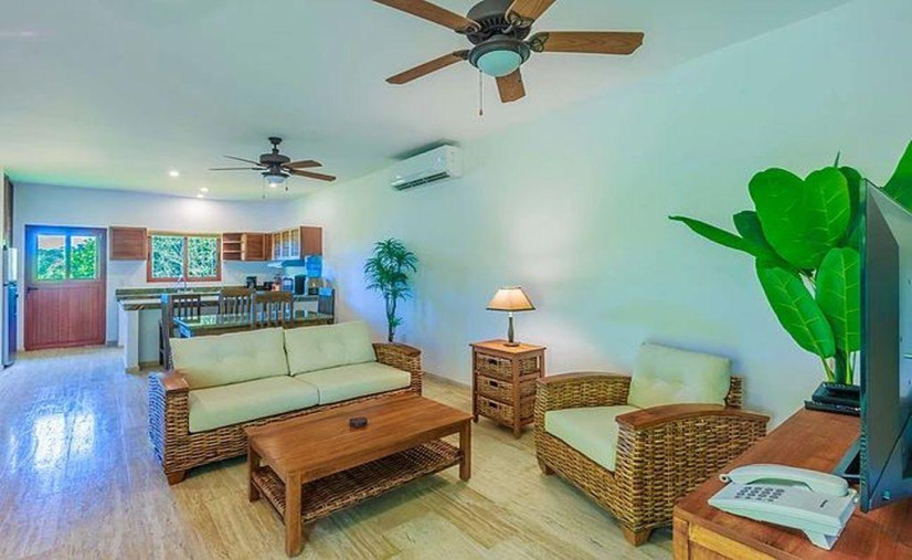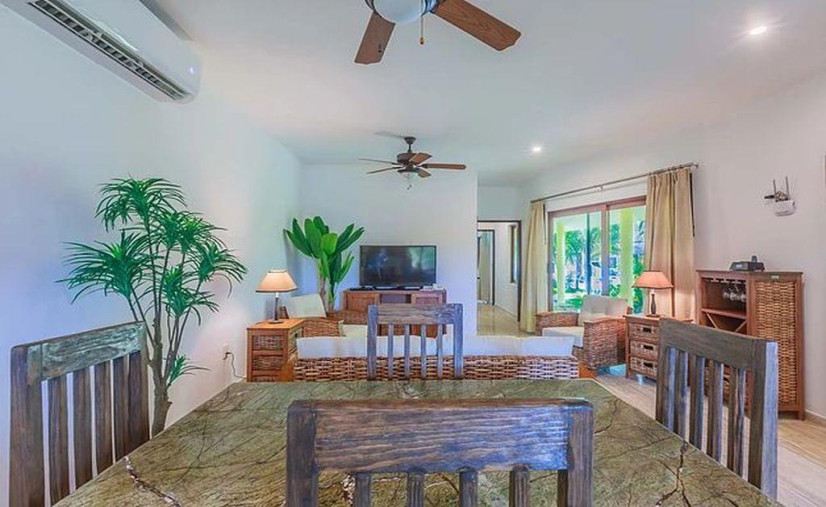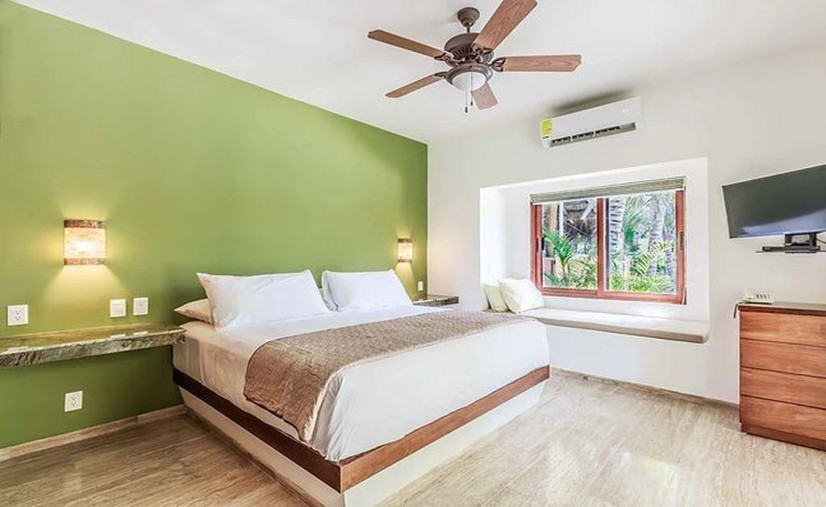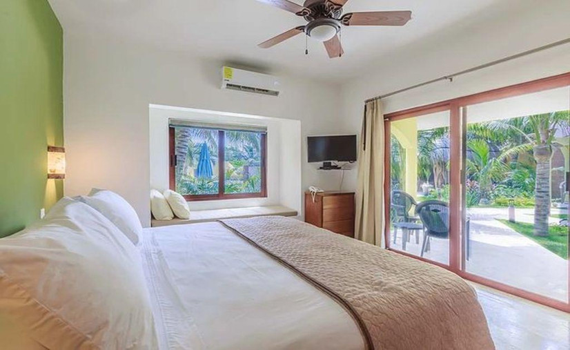Ground floor, one bedroom, one fab king bed, and a whole lotta comfort. Full kitchen? Oh yes—fridge, cooktop, oven, blender, toaster, and fancy cookware that'll make you feel like a chef (even if you just reheat pizza). Marble floors, sleek stainless steel appliances, and AC in every room—because sweat belongs by the pool, not in your living room.