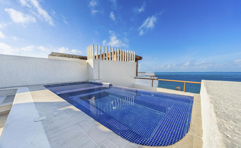 Just a quick airport dash and a breezy ferry ride later, you’ll land on Isla Mujeres in our 2-level stunner at Puerta al Mar, nestled on the exclusive Sac Bajo strip (because, obviously, you're VIP).