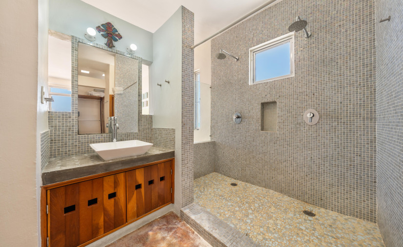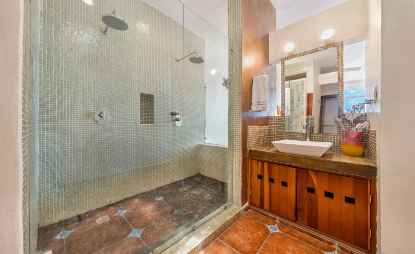 Villa Amistad sleeps 6 across 3 bedrooms—king master with rain showers, an upstairs queen, and a downstairs queen with a cute little 3/4 bath. You’ll share a pool with just one other villa, so no overcrowded chaos here.